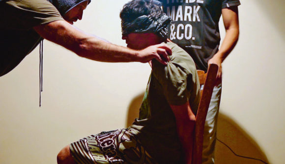 A citizen, in a way socially excluded, for whom basic existence is challenging, is kidnapped. This is important because the impact is directed towards an individual who is weak and unable to defend himself, as he is alone, separated. The citizen is incapacitated and taken for an interrogation. The official safety procedures are demeaning and selected according to local standards. In our religion you can not freely use your body, it doesn’t belong to us. Instead, you can freely use someone else’s body or even someone’s entire life because it belongs to god which means nobody.